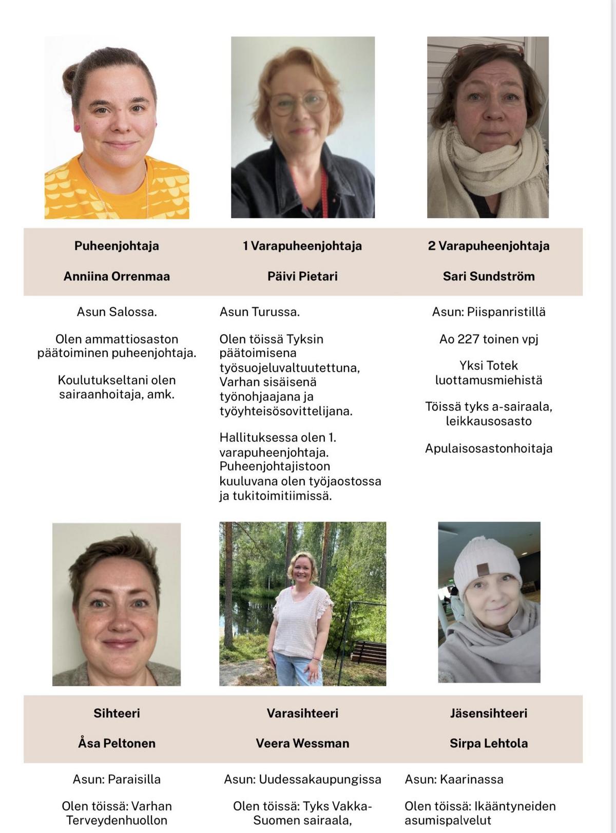 Tehyn Varhan ammattiosasto 227:n hallitus kaudelle 14.11.2024-31.12.2025